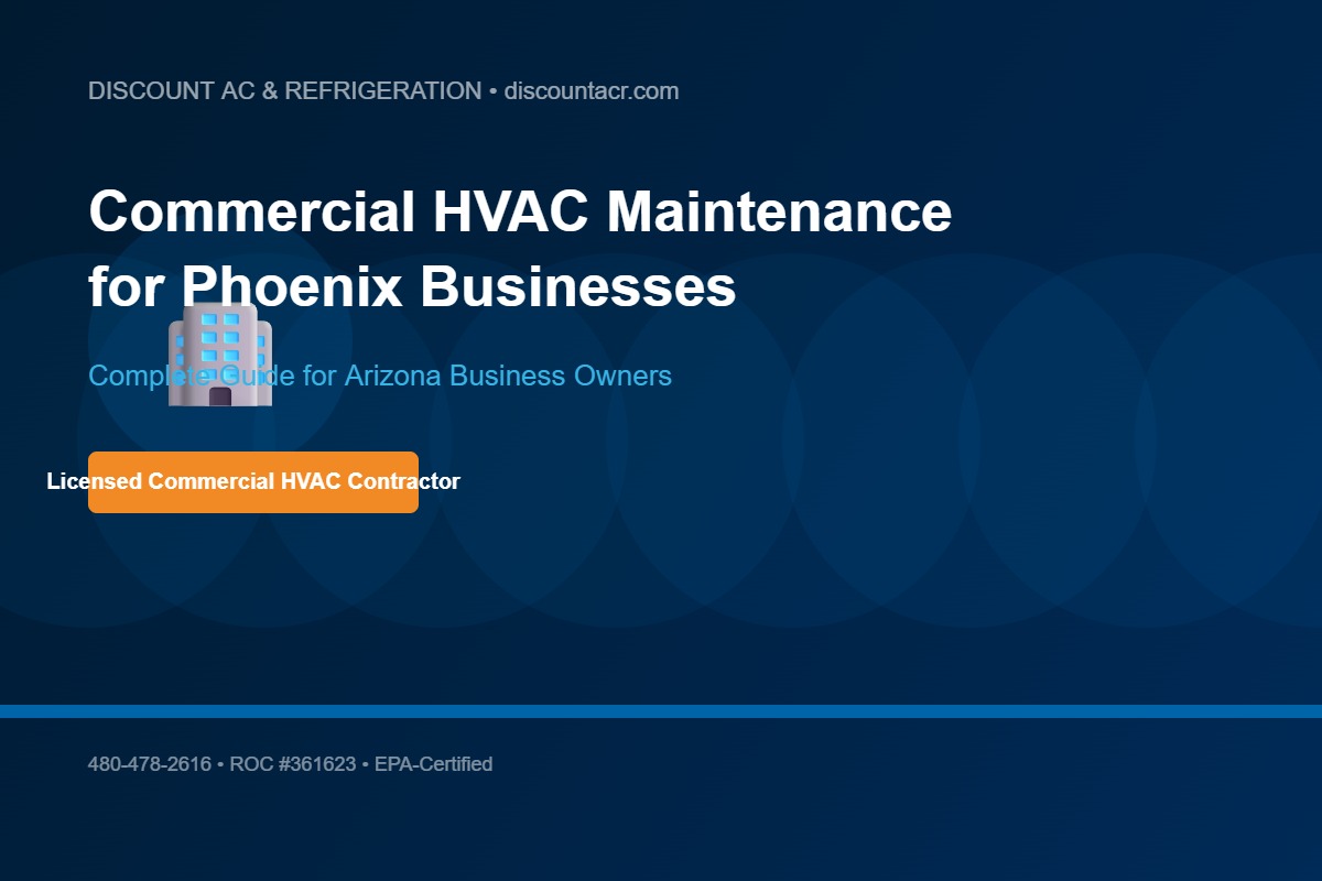 Discount AC & Refrigeration provides commercial HVAC service contracts for businesses throughout Phoenix, Gilbert, Scottsdale, and surrounding cities. Our commercial team holds all required Arizona commercial contractor licenses and EPA certifications. Call 480-478-2616 for a no-obligation commercial assessment.